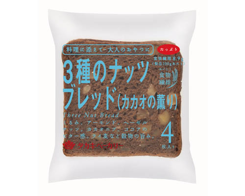 3種のナッツブレッド(カカオの薫り)(4) | 425 | 324 | 10.1 | 14.7 | 42.3 | 363 | 0.9 |