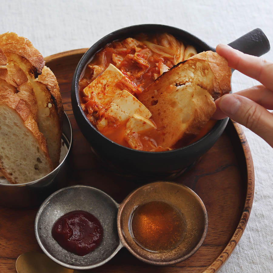 キムチと豚肉の旨味、ごま油が意外とパンに合う、冬の鍋メニュー“キムチチゲ” など。