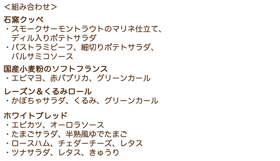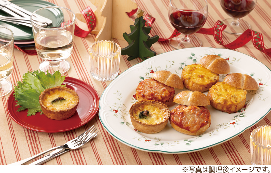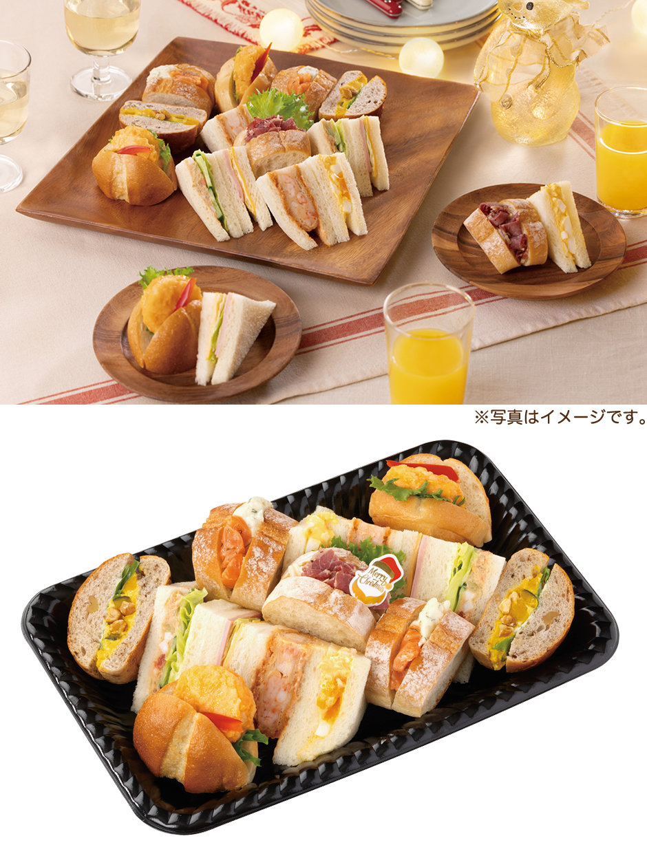 4種類のパンに彩り豊かな具材を合わせた、クリスマスの食卓を華やかにするサンドイッチプレートです。石窯クッペやソフトフランスには特別感のある具材を、三角サンドにはお子様から大人まで、みんなで楽しめる具材を合わせました。