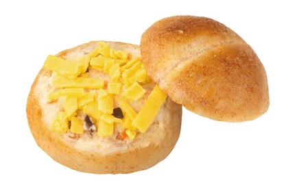 - スモークサーモントラウトやタマネギ、きのこ、ポテトなどが入ったクリーミーなフィリングと、チェダーチーズの豊かな風味が合わさった、濃厚なおいしさです。