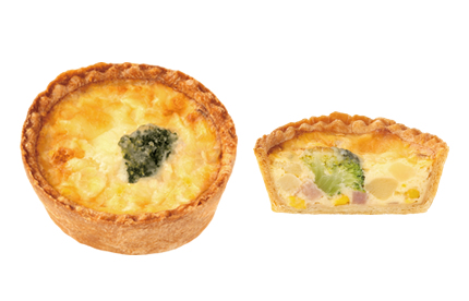 - ポテト、にんじん、ブロッコリー、ベーコンなどの具材を合わせ、チーズをトッピングして焼き上げました。さっくりとしたタルトと絶妙なバランスです。